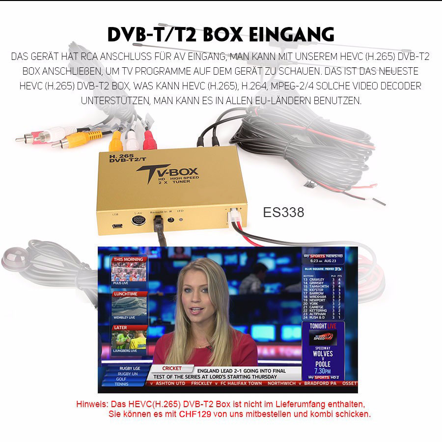 - DTV Box inkl.: Nein, Sie können H.265 DVB-T2 Box von uns mitbestellen