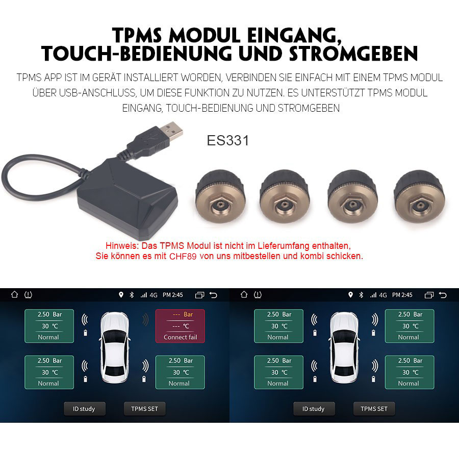 - TPMS Modul inkl.: Nein, Sie können TPMS Box von uns mitbestellen