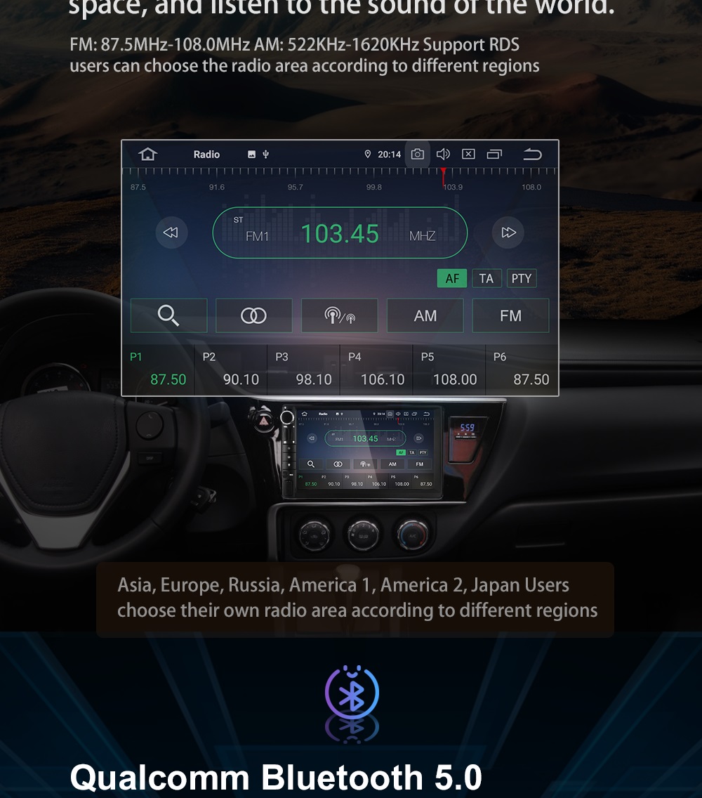 Frequenzbereich: FM:87.5MHz-108.0MHz AM: 522KHz-1620KHz Unterstützung RDS