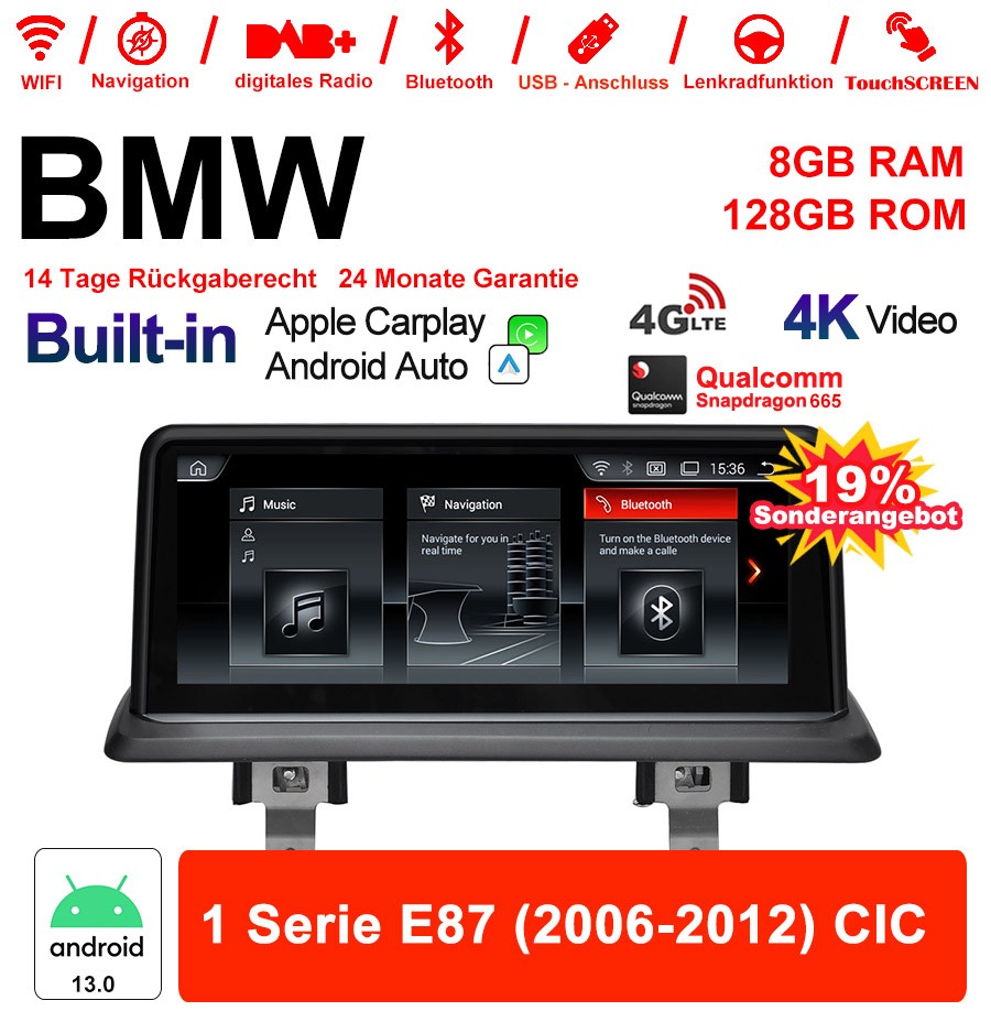 10.25 Zoll Qualcomm Snapdragon 665 8 Core Android 13.0 4G LTE Autoradio / Multimedia USB WiFi Navi Carplay Für BMW 1er E87 (2006-2012) CIC