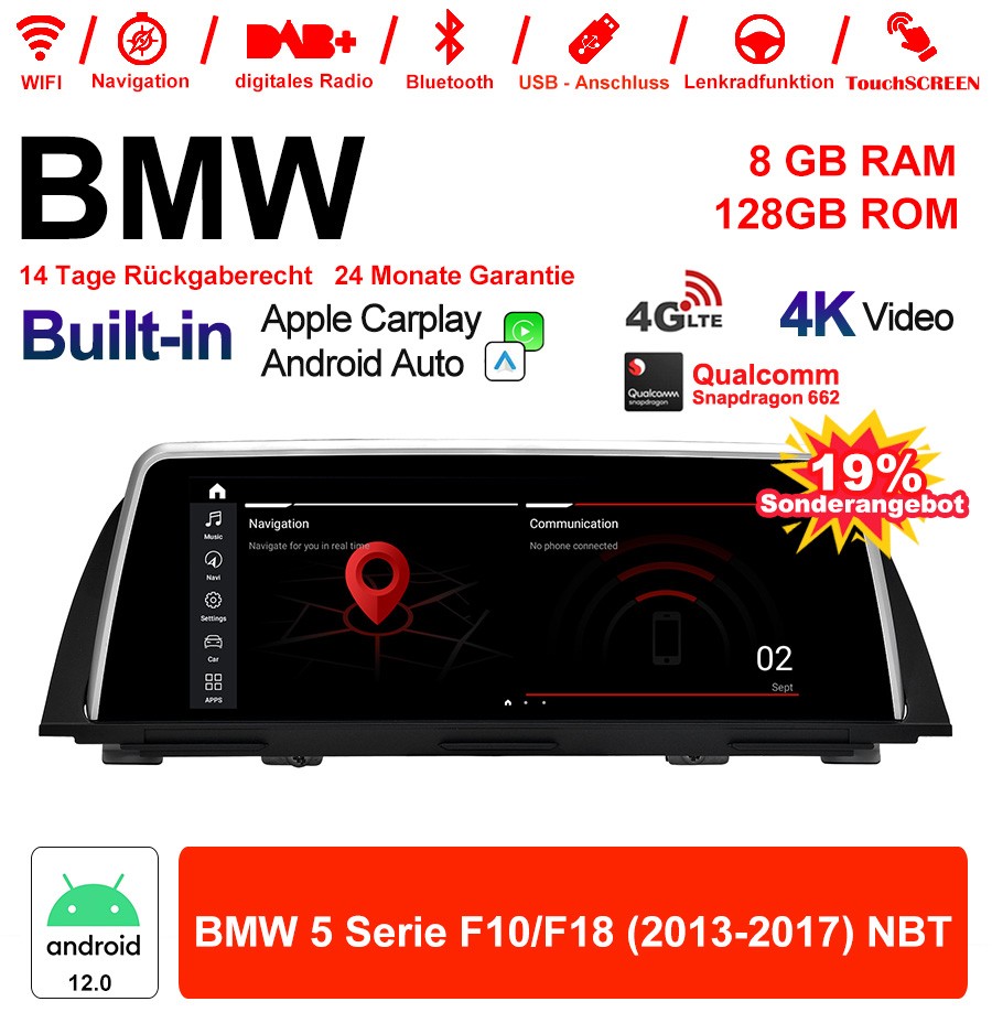 10.25 Zoll Qualcomm Snapdragon 665 8 Core Android 12.0 4G LTE Autoradio / Multimedia USB WiFi Navi Carplay Für BMW 5 Series F10/F18 (2013-2017) NBT