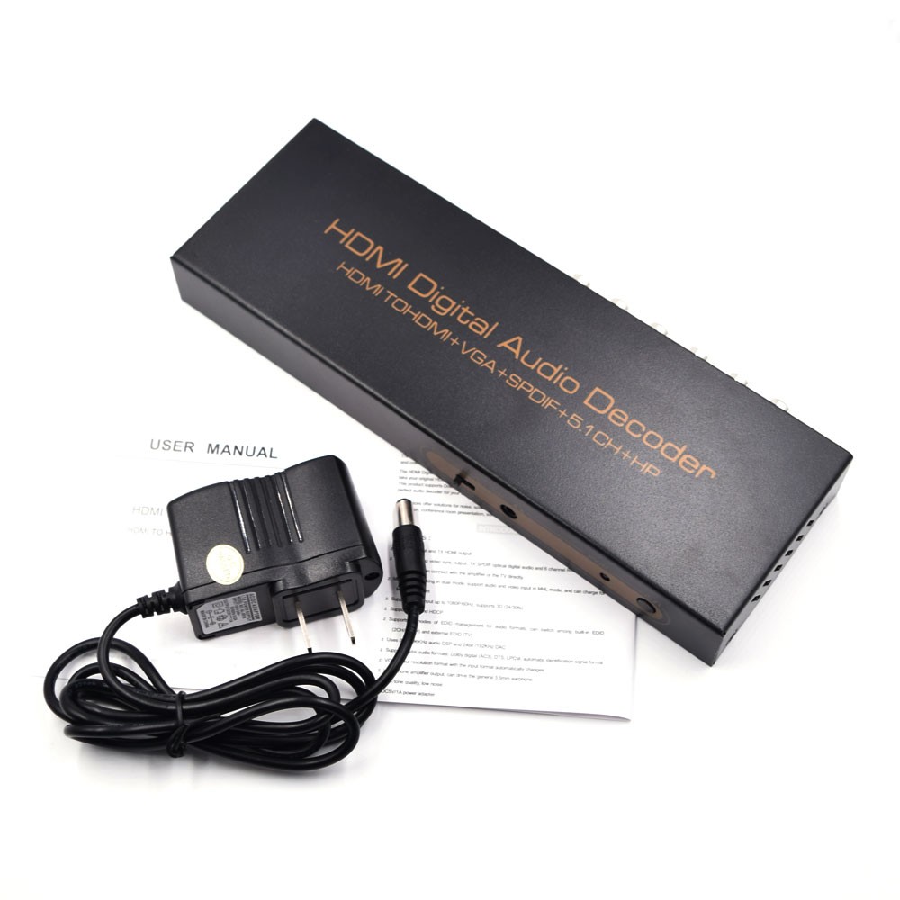 The HDMI Digital Audio Decoder allows you to extract audio signals from your HDMI source. You can take your original HDMI audio signal and convert it to digital optical or analog 5.1 sound track output.