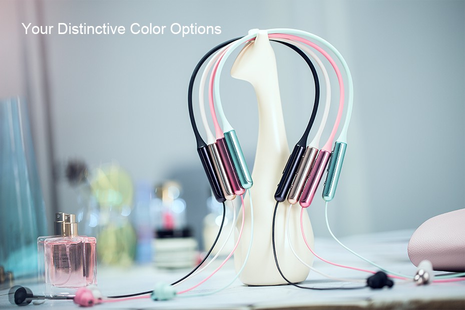 EINE weiche und flexible neckband mit eine haut-wie silikon material bietet komfort während längeren einsatz. EINE eingebaute speicher stahl draht ermöglicht die neckband zu falten für einfache lagerung in ihre tasche oder reise fall.