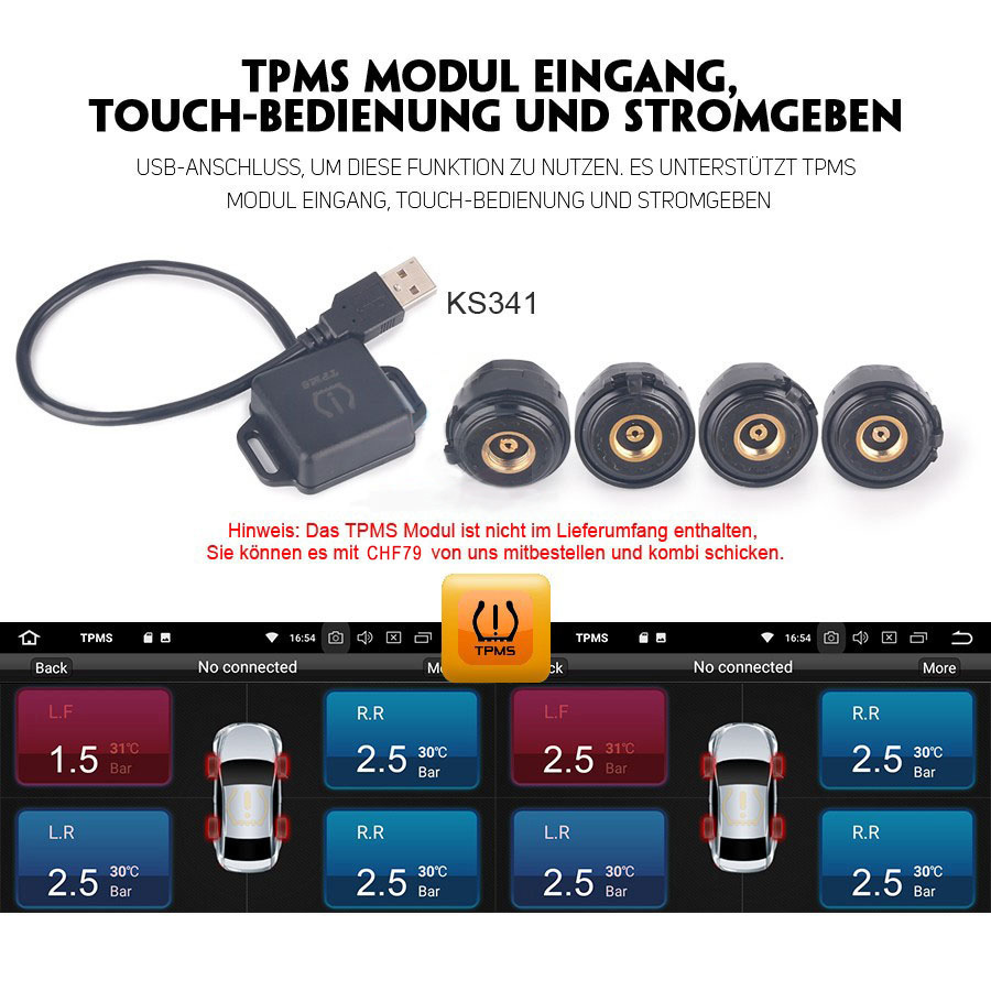 - TPMS App vorbereitet: Ja, verbinden Sie einfach einem TPMS Modul, um die Funktion zu benutzen