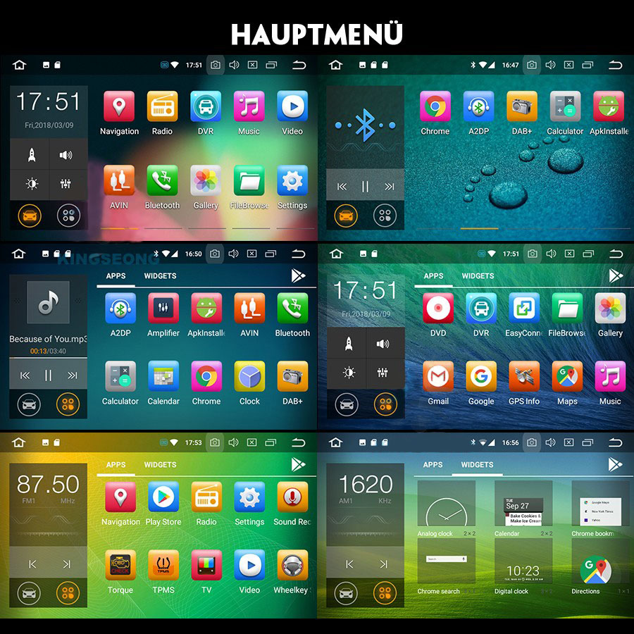 - DIY Hauptmenü display: Ja, Sie können Suchleiste, Musik/Radio/BT- Stereo Player oder Apps auf Hauptmenü ziehen