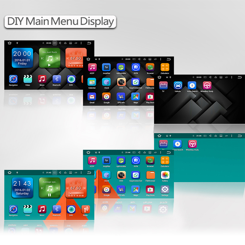 - DIY Hauptmenü display: Ja, Sie können Suchleiste, Musik/Radio/BT- Stereo Player oder Apps auf Hauptmenü ziehen