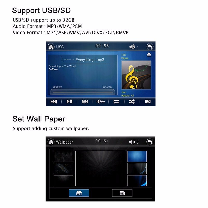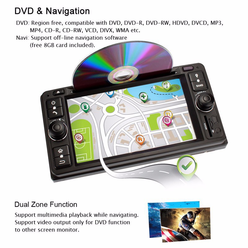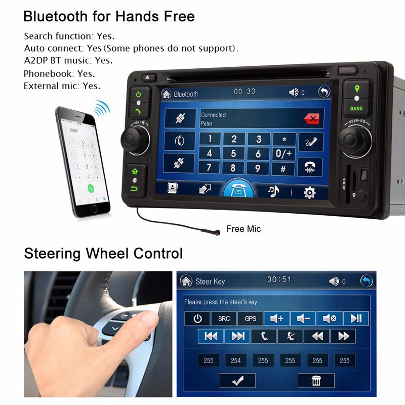 Highlights:1. Navigation / GPS integriert im Gerät2. Kompatibel mit Iphone und Android smartphones 3. Freisprechanlage, Bluetooth und Wifi Funktionen 4. Touchscreen, USB Anschlüsse und die Lenkradbedienung Funktionen.