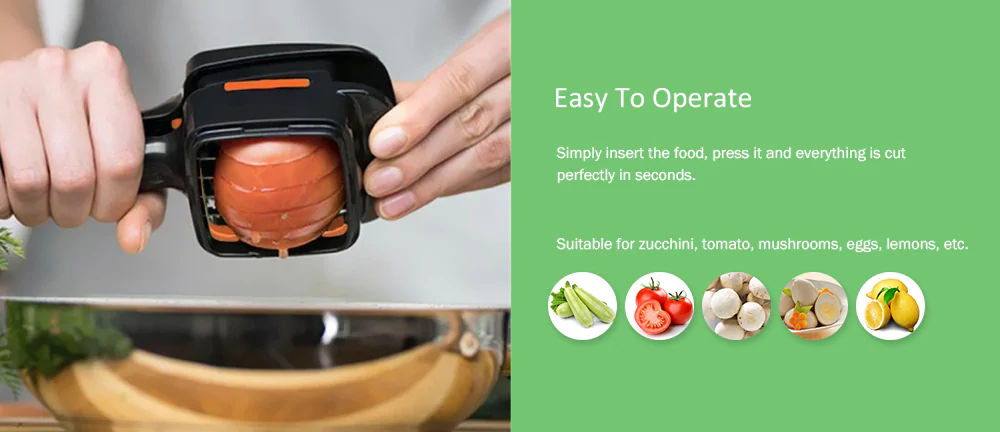 Dieses Produkt ermöglicht es dem Hauskoch, frisch geschnittenes Obst und Gemüse zu seinen Mahlzeiten hinzuzufügen, da dieses Werkzeug es ermöglicht, sie schnell zu den Mahlzeiten hinzuzufügen.