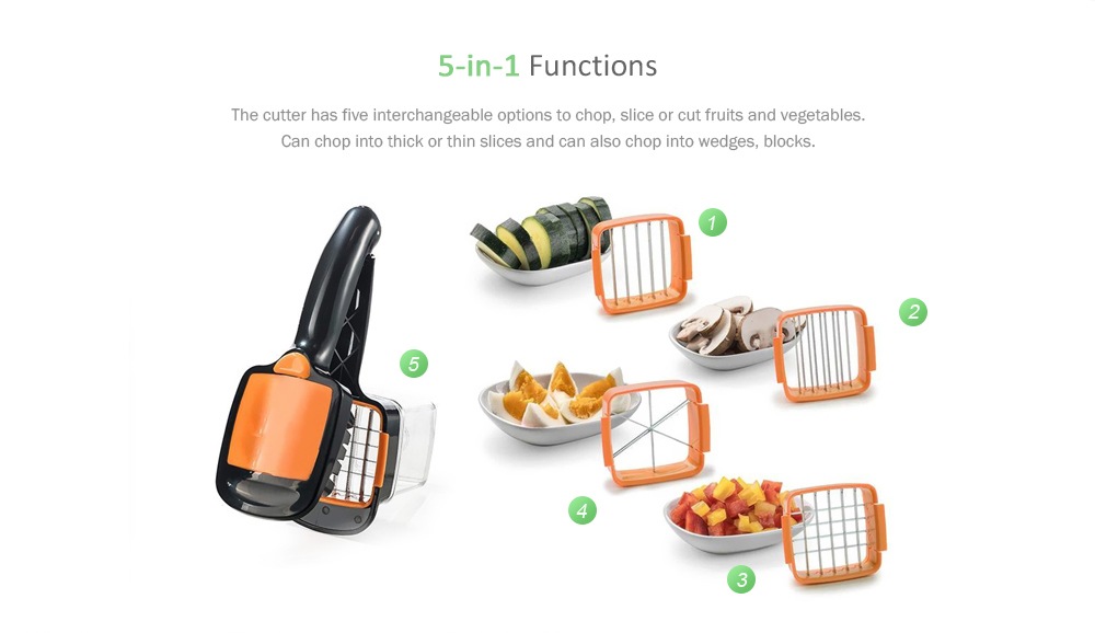 5 in 1 Dicer Obst Gemüseschneider Nicer Dicer Schnell Edelstahl-Chopper Eigenschaften