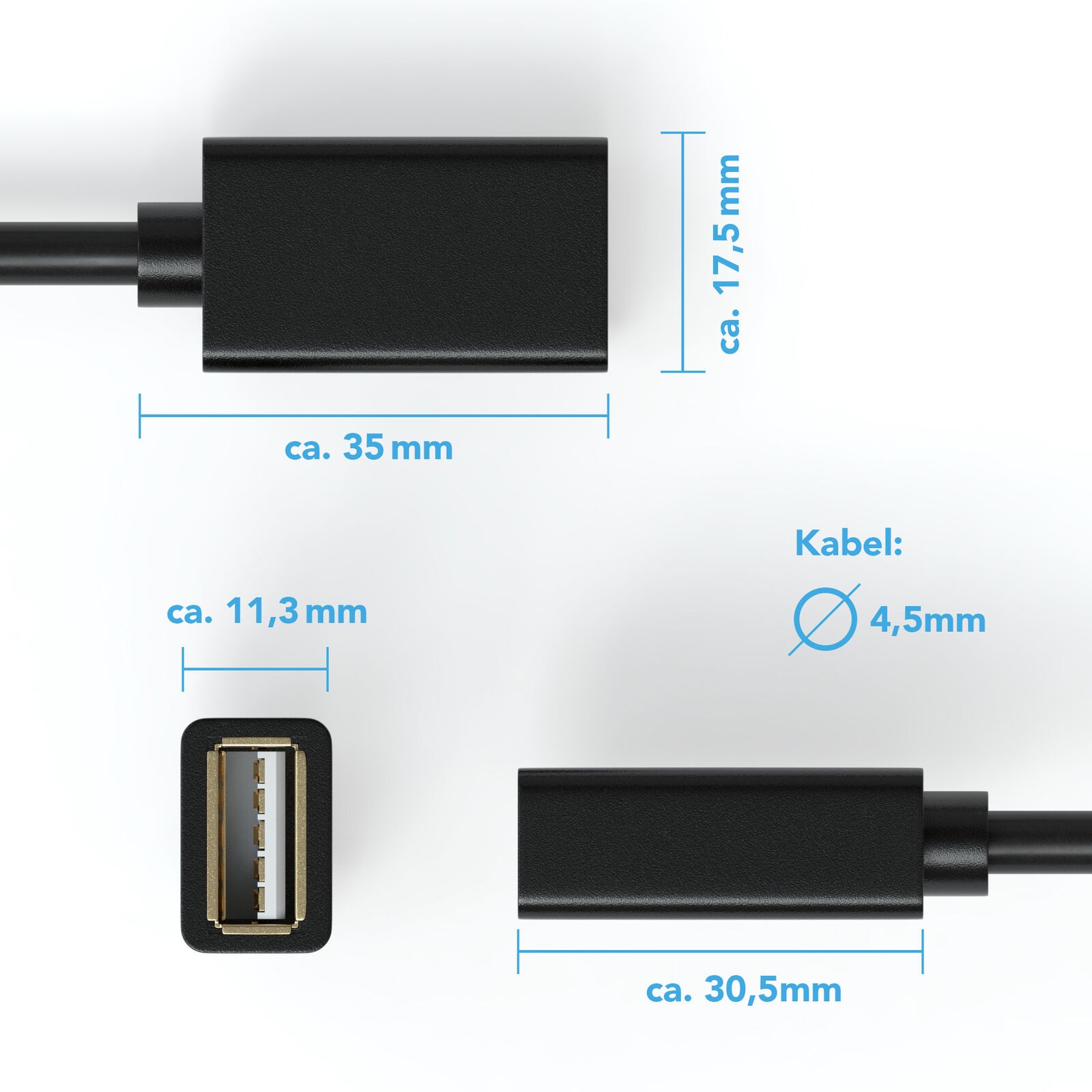 - Anschluss A: USB-Standardtyp A, Stecker