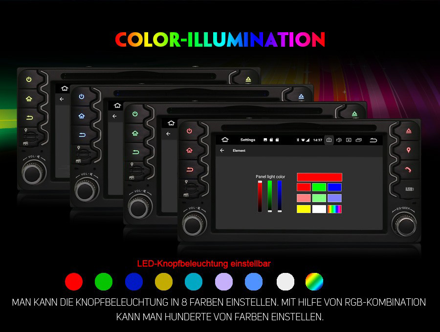 - DIY Hauptmenü display: Ja, Sie können Suchleiste, Musik/Radio/BT- Stereo Player oder Apps auf Hauptmenü ziehen