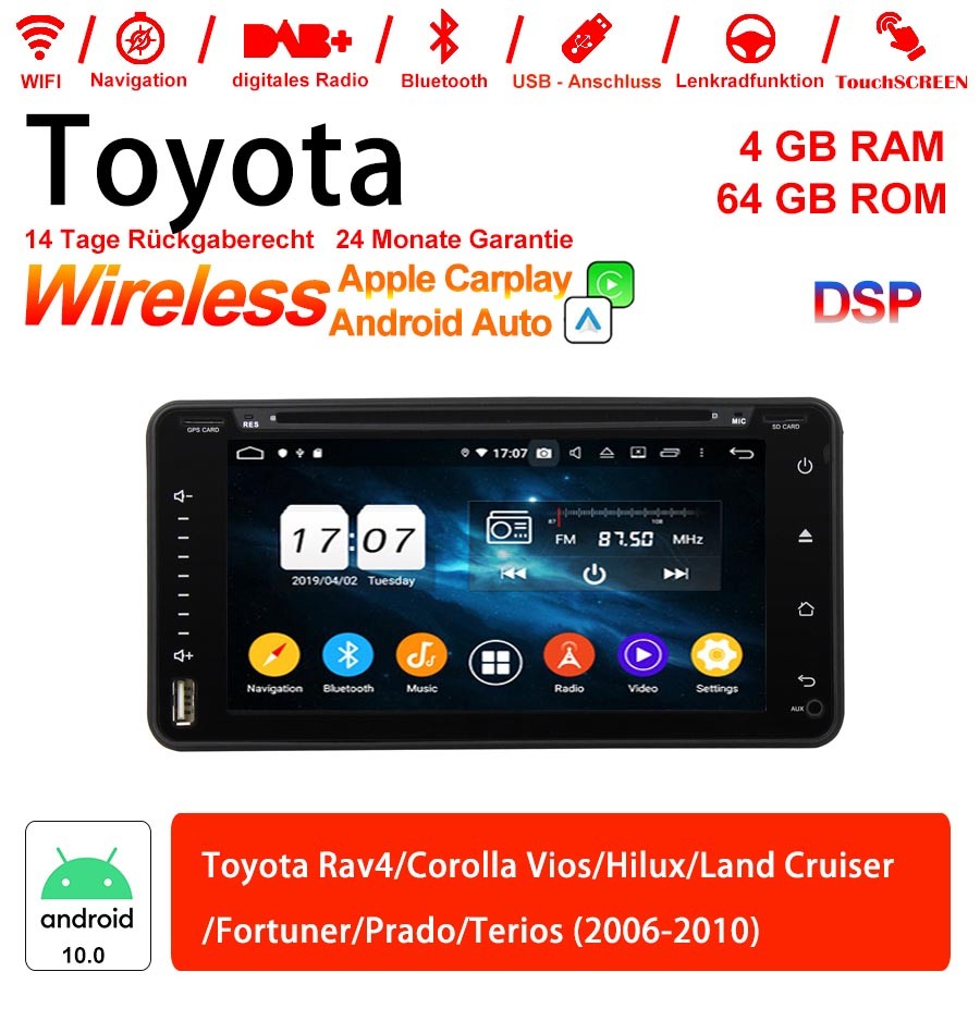 6.95 Zoll Android 12.0 Autoradio / Multimedia 4GB RAM 64GB ROM Für Toyota Rav4/Corolla Vios/Hilux/Land Cruiser /Fortuner/Prado/Terios