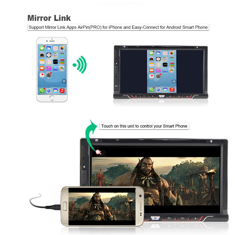 - Unterstützt den neuesten Mirror Link mit dem iPhone über WiFi und mit dem Android Smartphone über USB oder WiFi