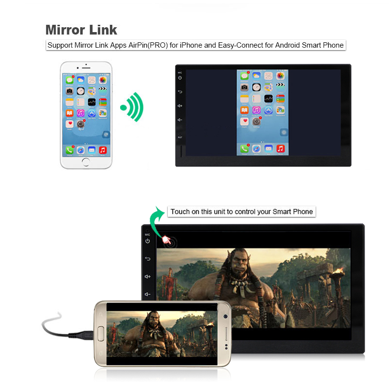 - Mirror Link Funktion: Ja, support Mirror Link für iphone und Android Smartphone