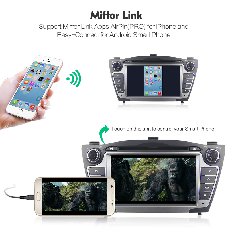-Eingebaute Spiegel link.Es kann verbinden mit Iphone über Wifi hotspots und verbinden mit Android handy über USB daten kabel und Wifi hotspot. Die handy bild wird display auf DVD, auch musik, video, spiel. Für Android mobile, die DVD touchscreen können den mobilen kontrolle. (bitte beachten sie: Es kann unterstützung ein teil von Android handy nicht alle von ihnen)