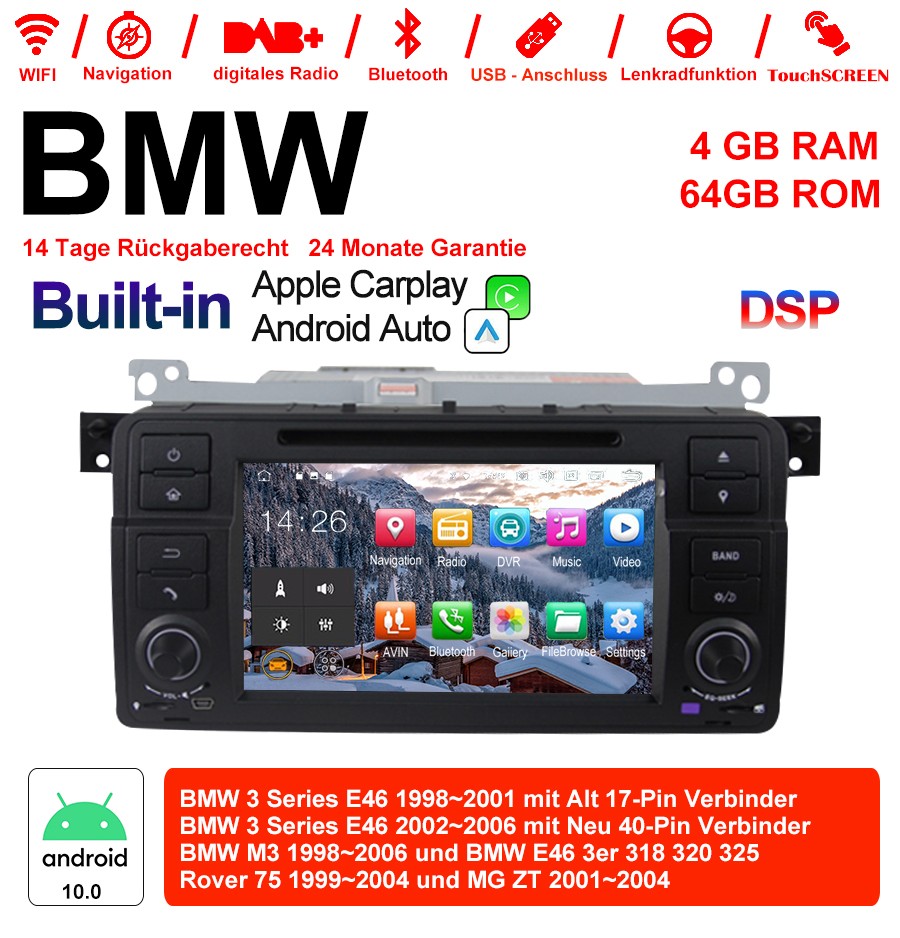 7 Zoll Android 10.0 Autoradio 4GB RAM 64GB ROM Für BMW 3 Series E46 BMW M3 Rover 75 Built-in Carplay / Android Auto