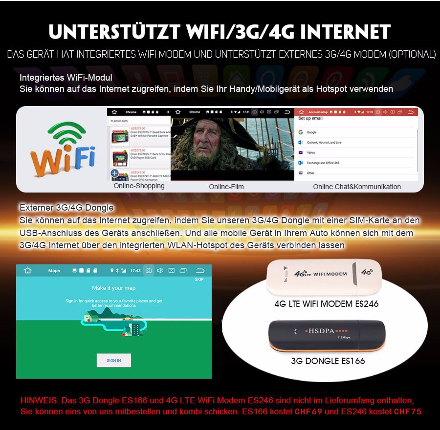 - WiFi Internet: Integrierte WiFi Modul, 802.11b/g/n unterstützen