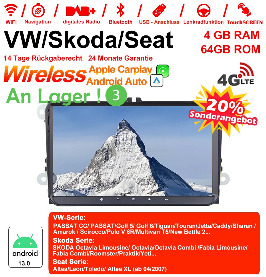 9 Zoll Android 13.0 4G LTE Autoradio / Multimedia 4GB RAM 64GB ROM Für VW Magotan, Passat, Tiguan, Touran, Seat, Skoda Built-in CarPlay / Android Auto