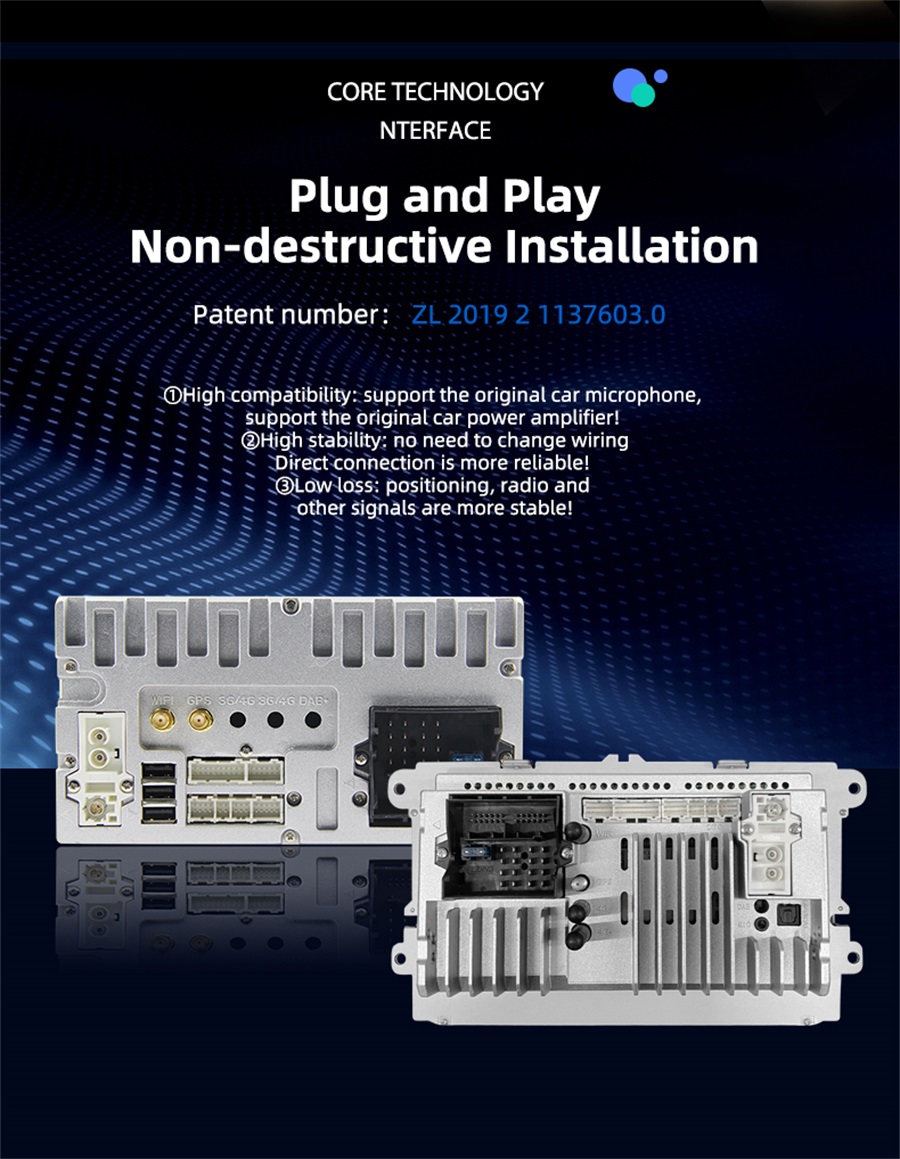 - Position: 3 USB auf dem Rücken, kann als Media/3G/4G/Kamera/DAB+/TPMS/Handy Anschluss