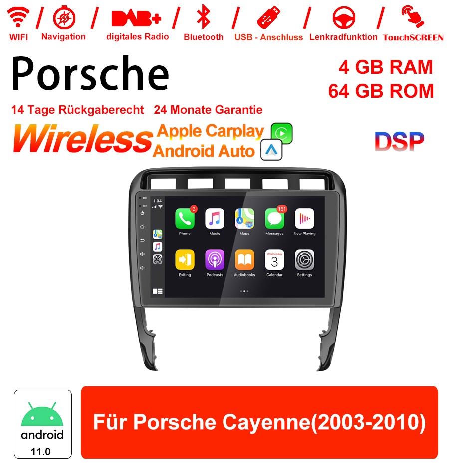 9 Zoll Android 11.0 Autoradio / Multimedia 4GB RAM 64GB ROM Für Porsche Cayenne(2003-2010)