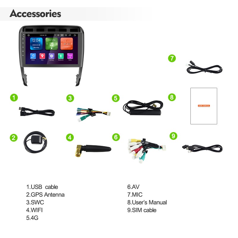 - Position: 3 USB auf dem Rücken, kann als Media/3G/4G/Kamera/DAB+/TPMS/Handy Anschluss