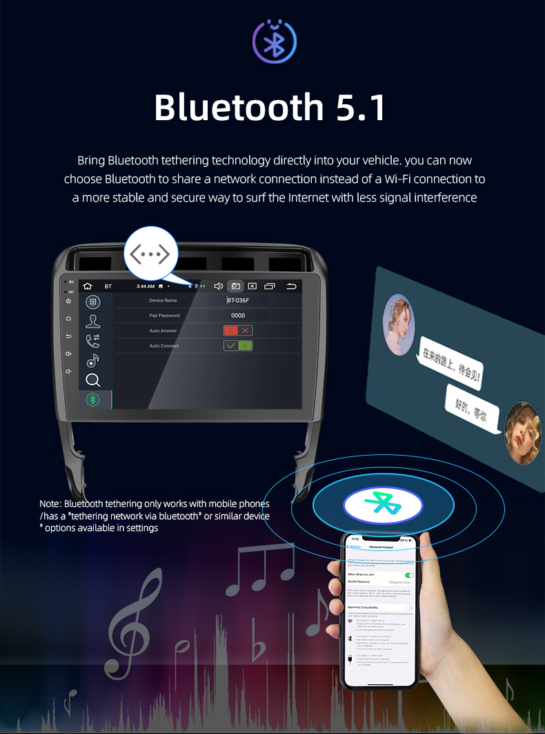 - A2DP (Bluetooth Stereo Musik): Ja, kann die Stereo-Musik direkt via Bluetooth wiedergeben