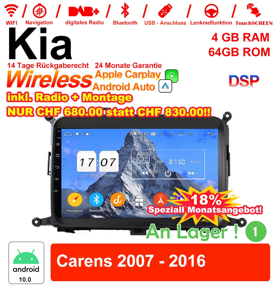 9 Zoll Android 12.0 Autoradio / Multimedia 4GB RAM 64GB ROM Für Kia Carens 2007-2016 Mit WiFi NAVI Bluetooth USB