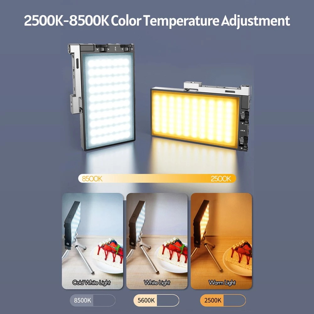 Mit 2500K-8500K Farbtemperatur und 1-100% Helligkeit, frei einstellbar. CRI > 97 und TLCI > 96 für realistischere Farben und genauere Details.