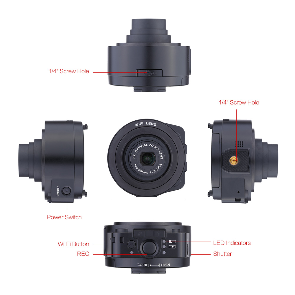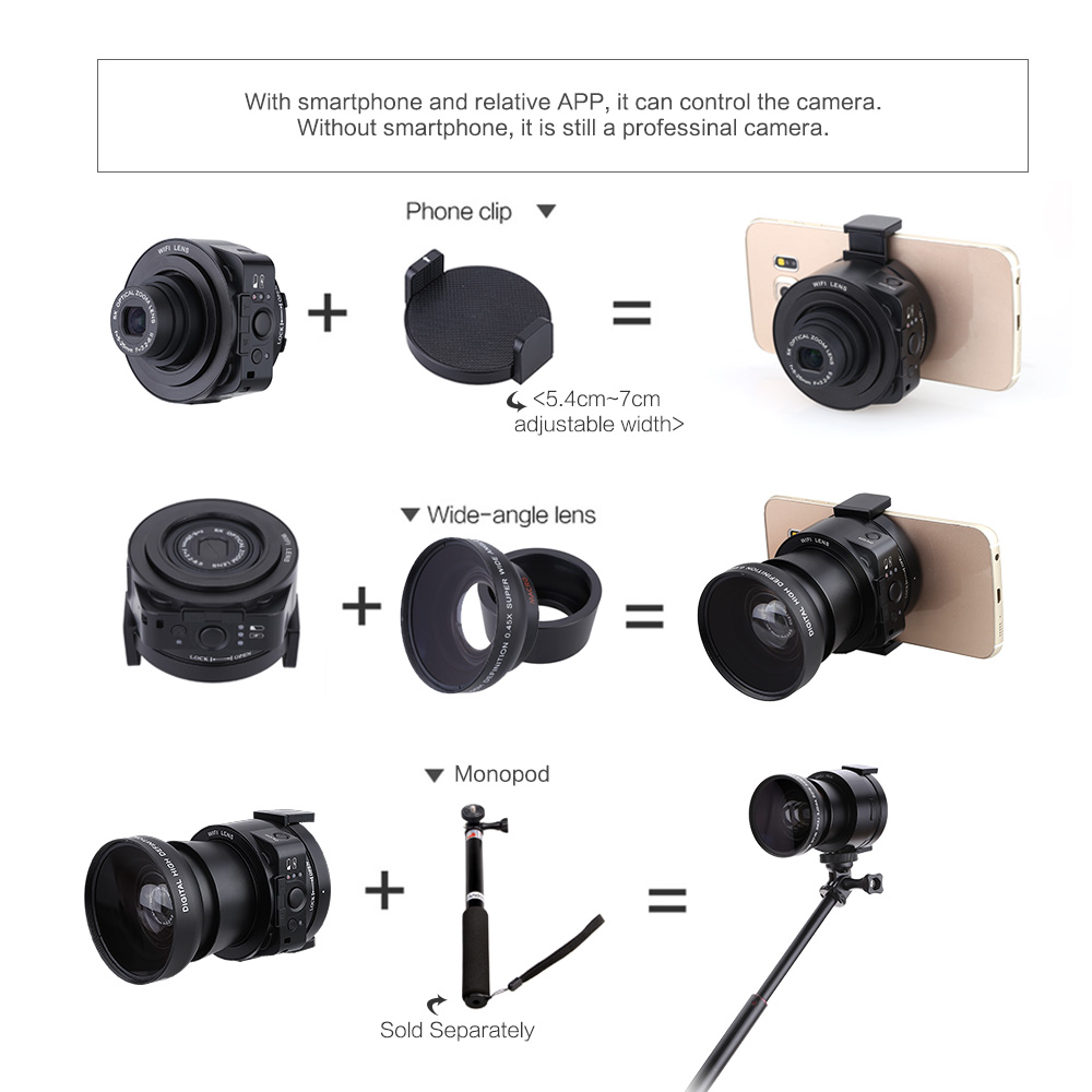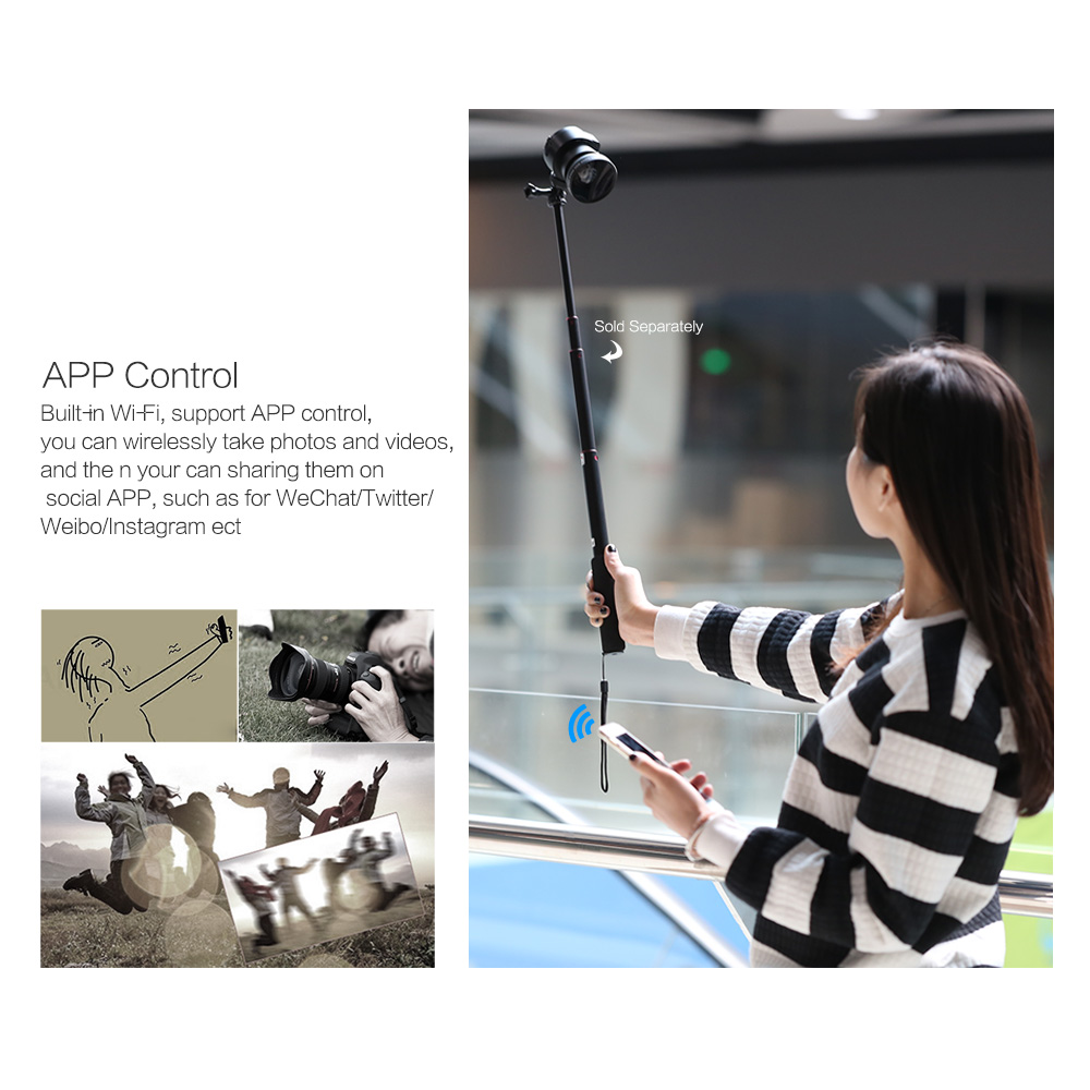 With built-in WiFi, you can operate the camera by APP after connected, and you can also share photos or videos to multiple social APP, such as for QQ/WeChat/Facebook/Twitter/Sina Weibo/ Instagram.
