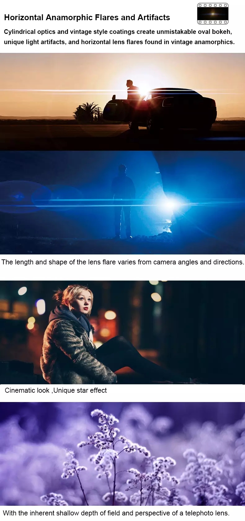 【Professional Ebene Cinematography】One von Anamorph der einzigartigen eigenschaften ist seine fähigkeit zu geben sie eine filmischen blick auf ihr videos. Wenn die linse ist unterzogen vivid licht, entweder durch auto scheinwerfer, straße lichter oder harten licht während der nacht schießt, es schafft eine linse flare ähnliche zu was sie sehen in filme. Origanic flare s und verzerrung für hinzugefügt charakter und tiefe.