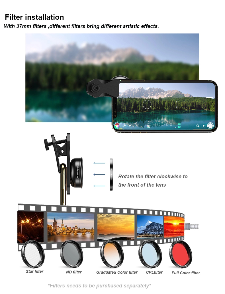 【 4K HD & Weniger Distortion】Apexel Telefon Filmausrüstung Objektiv sind aus Kino-grade glas und eloxiertem aluminium design mit asphärische linse, effektiv korrektur die sphärische aberration und axiale chromatische aberration in die imaging prozess, die verringerung der bild verzerrung weniger als 2%. 4K HD video, hohe farbe reproduktion, geben sie wirklich klare vision, weg von video sport schwindel.