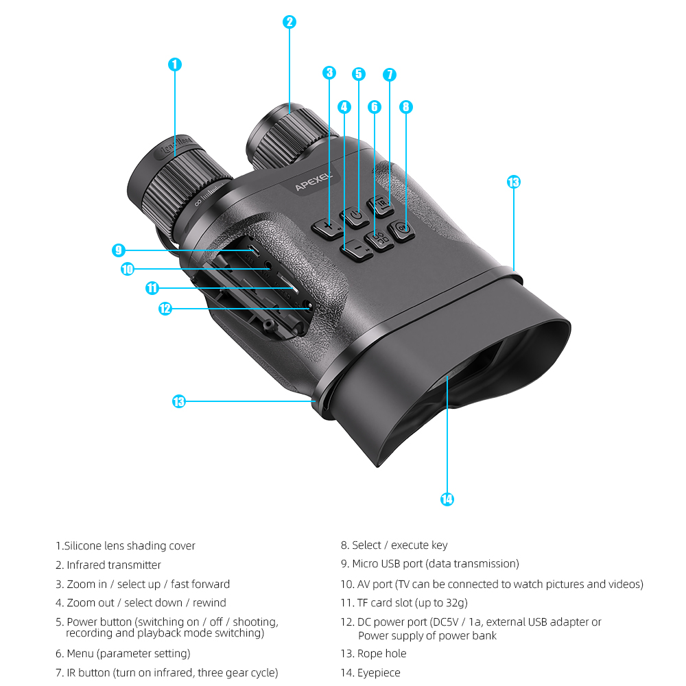Hervorragende optische klarheit, CMOS sensor verwendet high-leistung digital night vision fernglas zu erreichen eine klare sichtfeld.