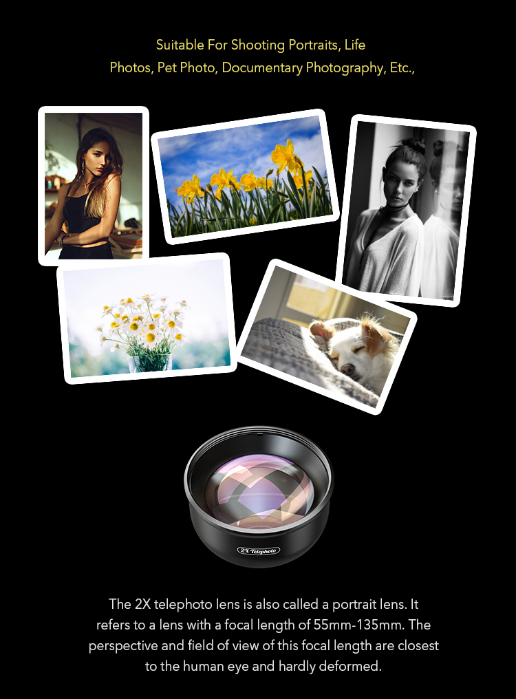 2x teleobjektiv ruft sie näher für engere, crispier aufnahmen ohne mit der digital zoom. Optimiert für dual objektiv geräte, sie können erreichen 2x optischen zoom, wenn montiert über eine einzelne linse kamera oder wichtigsten objektiv von eine dual objektiv, 4x optische zoom wenn montiert über die iPhone teleobjektiv