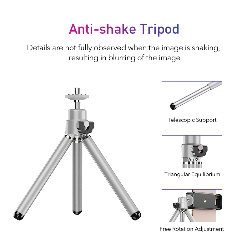 Wir können das telefon in die robust einstellbare stativ nach objektiv befestigt war. Auch verwenden die stativ als mini selfie stick