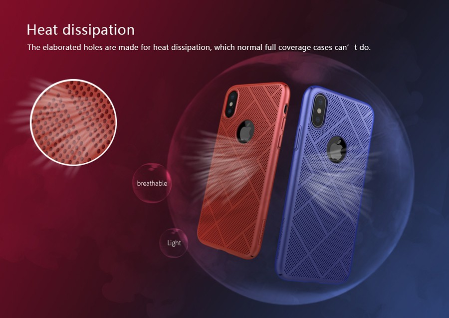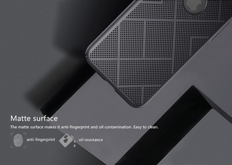 Made from PC material. Processed by nano oil painting technology. Matte surface. Lightweight and thin. Simple design and ventilated. Scratch-resistant, wear-proof, anti fingerprint and oil contamination. Three thousand little holes make it with good ventilated performance. Nillkin Air case with fashionable simple design, cool and delicate touch feeling. Frame of the camera cutout is higher for camera protection.