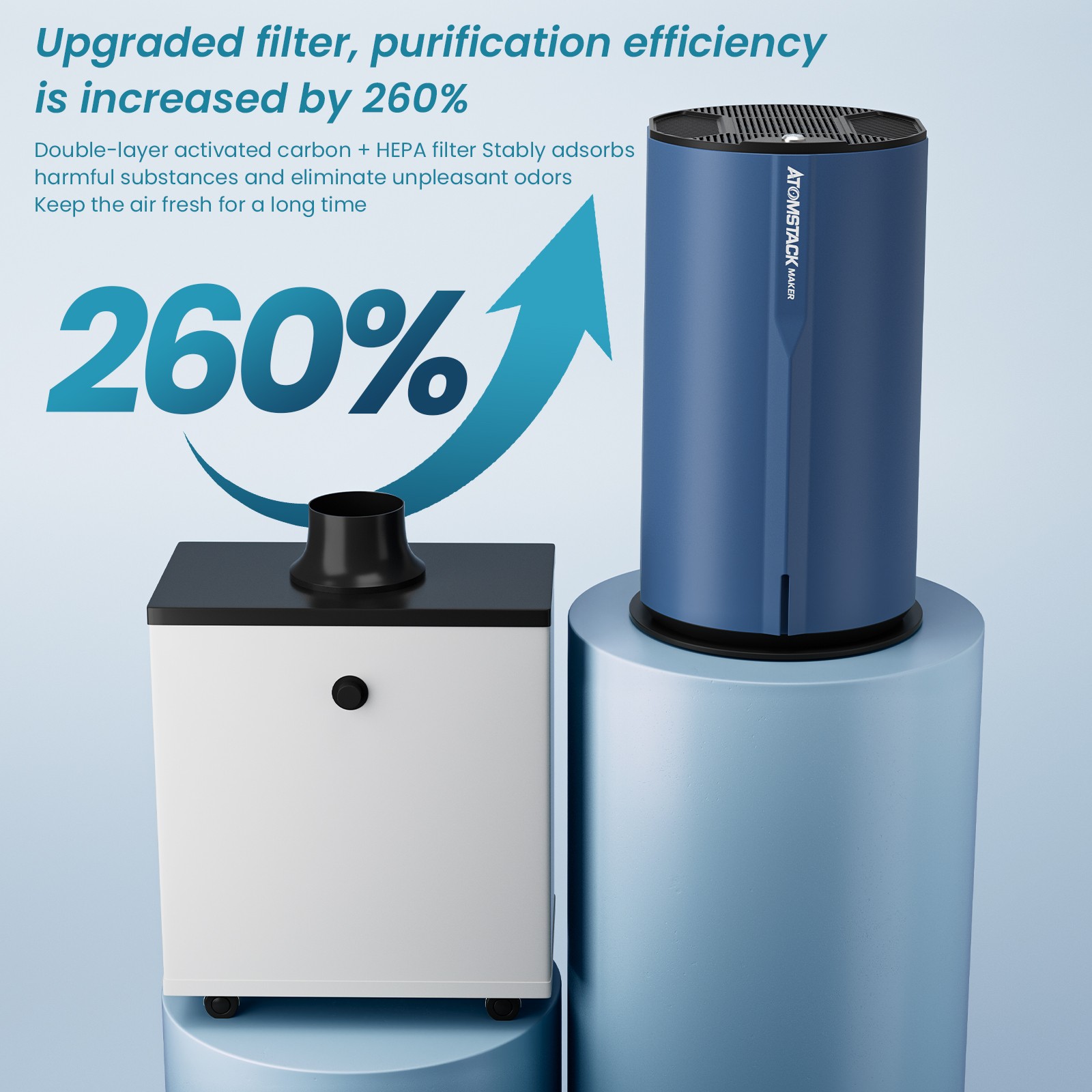 1. entwickelt für das Lasers ch neiden: ATOMSTACK Maker d2 Luft reiniger, ein 8-Schicht-Filterelement, das speziell für das Lasers ch neiden entwickelt wurde, kann den Geruch und die schädlichen Substanzen, die durch Lasers ch neiden erzeugt werden, effektiv filtern, mit einer Filtration srate von 99.97% (ATOMSTACK Labor testdaten).