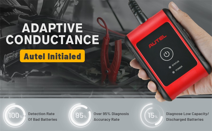 Autel MaxiBAS BT506 wendet Adaptive Conductance an, um den Leitfähigkeitszustand einer Batterie zu messen. Im Vergleich zu herkömmlichen Belastungstestern ermöglicht diese Technologie mehrere Tests, ohne die Batterie zu entladen, und das Testen von Batterien, die schwach oder fast vollständig entladen sind. Dieses Autobatterie-Tool BT506 von Autel verwendet in ähnlicher Weise Adaptive Conductance, um die Partnerkomponenten der Batterie, die Lichtmaschine und den Anlasser, zu testen, um zu sehen, ob sie eine Ladung aufnehmen und speichern können. Creative Adaptive Conductance für 95 % Genauigkeit.