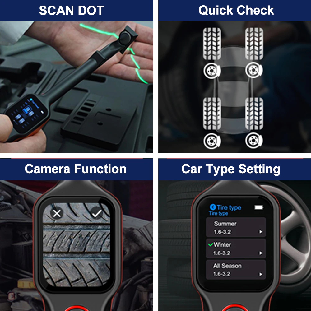 ● Einzigen Check:Hilft messen die tragen von jedem reifen auf die fahrzeug durch die untersuchung der lauffläche tiefe in der mitte bereich von die reifen nur.