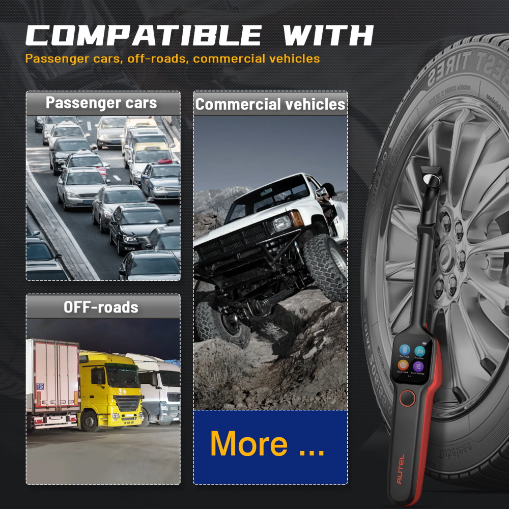 Das Autel TPMS-Tool Maxitpms TBE200E kann fast alle auf dem Markt befindlichen Reifenmarken testen, wie z.B. Goodyear, Continental, Michelin, BRIDGESTONE . Ob Pkw, Geländewagen oder Nutzfahrzeuge, ein ITS600 reicht aus, um deren Reifentiefe und Profilabnutzung zu messen.