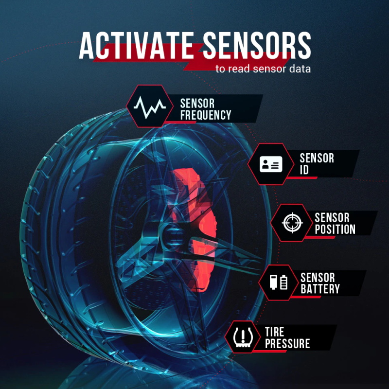 3. Read Data including tire pressure, temperature, battery condition, OEM Part number and relearn information.