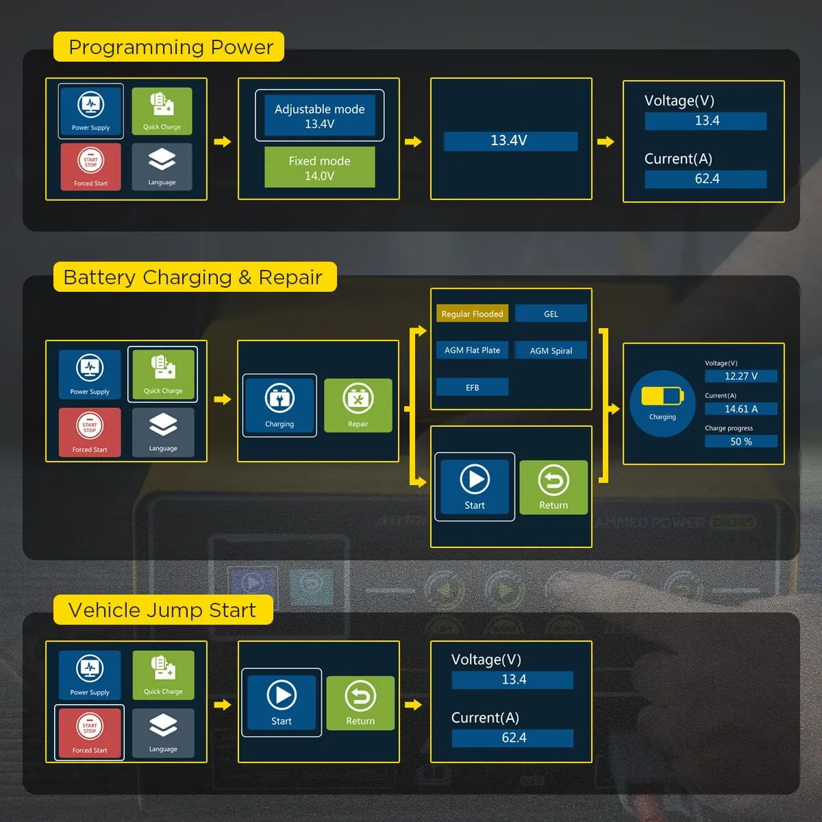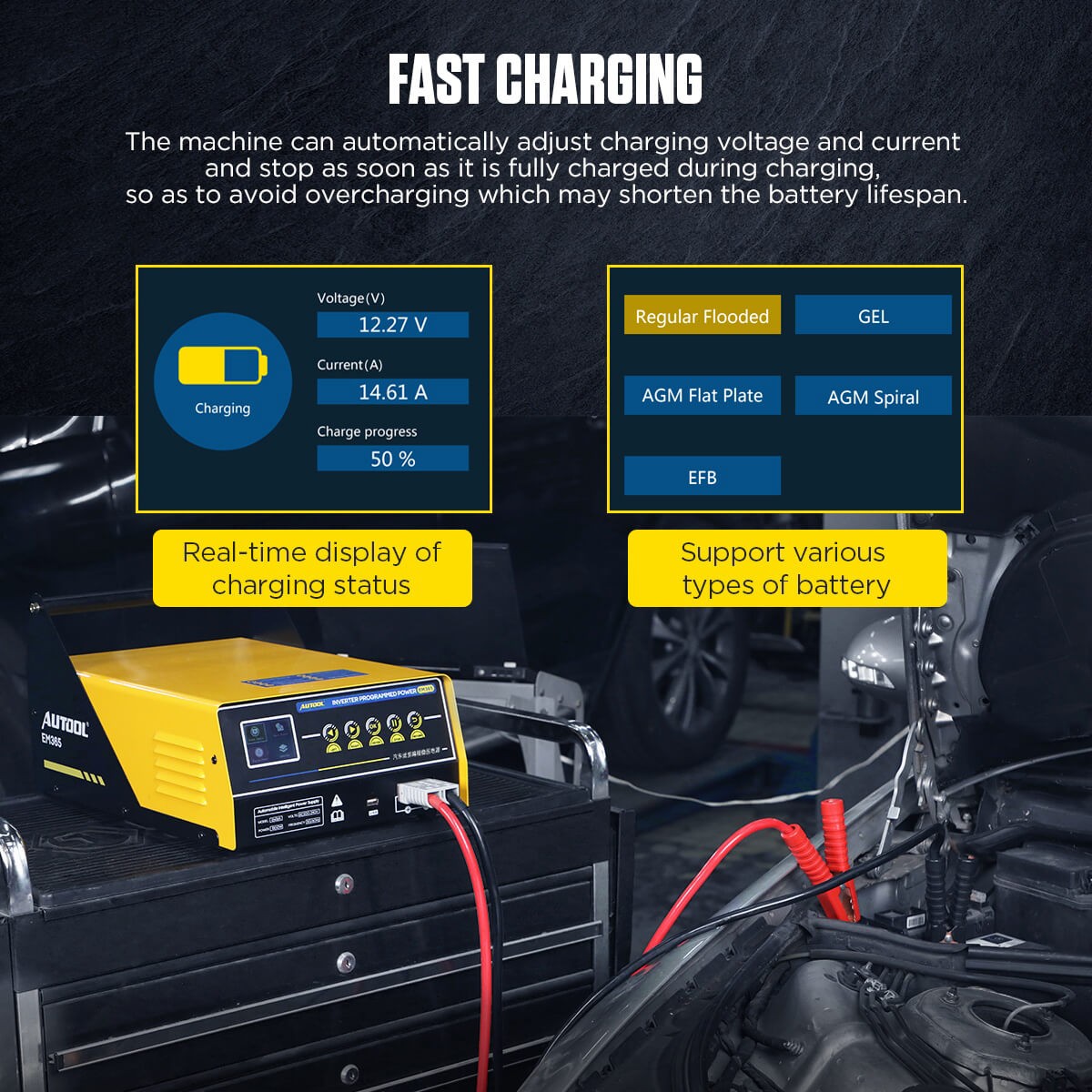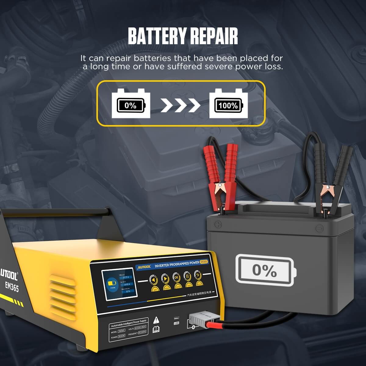 AUTOOL EM365 150A Inverter Programmierung Netzteil & 12V Battey Ladegerät & Auto Starthilfe Regler Spannung Transformator