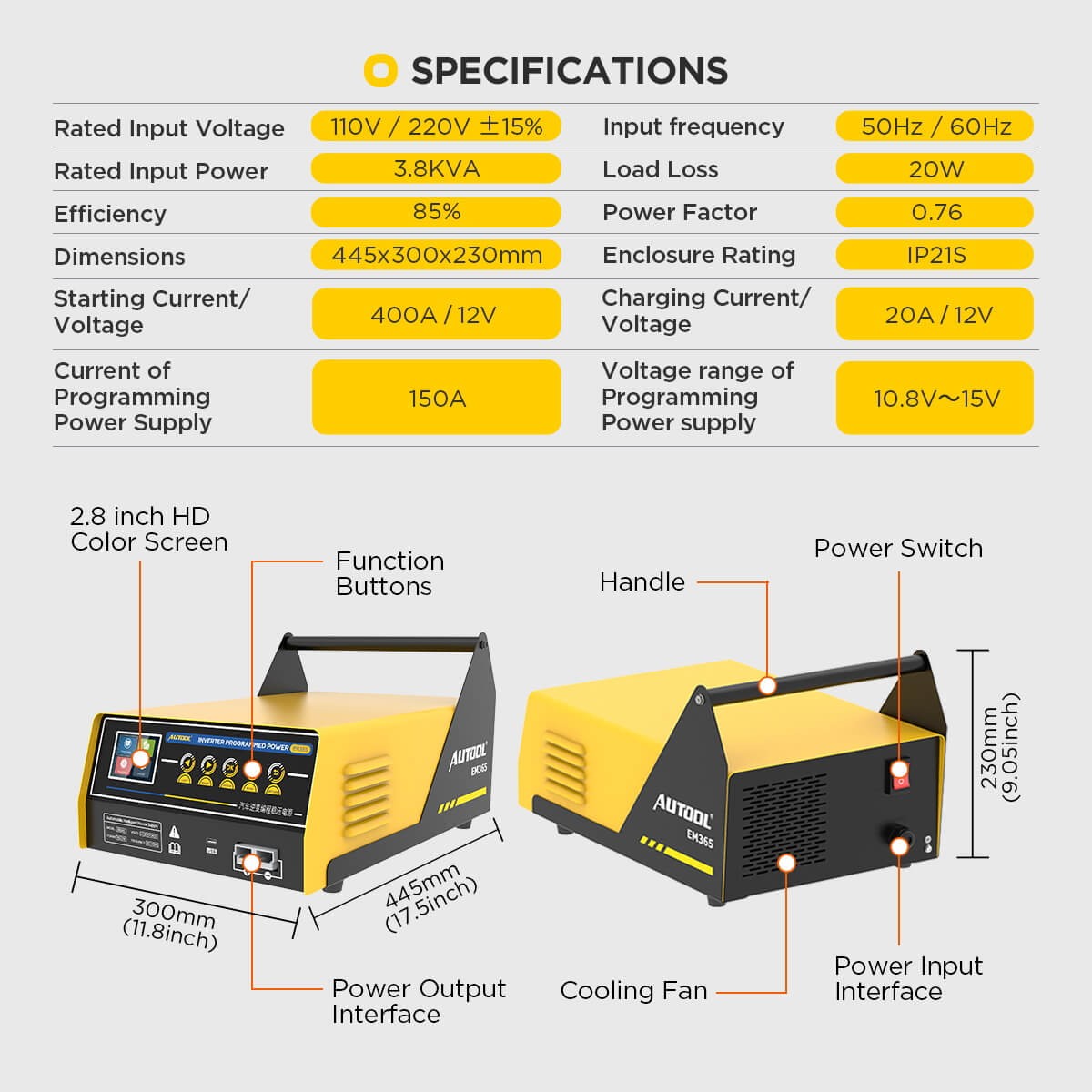 1. [Programmier leistungs modus]: Die Programmier strom versorgung des Autool em365 Inverters ist in der Lage, stabile Strom versorgung bereit zustellen und das elektronische Steuer modul (Ecu) des Fahrzeugs bei der Programmierung oder Dekodierung zu unterstützen.