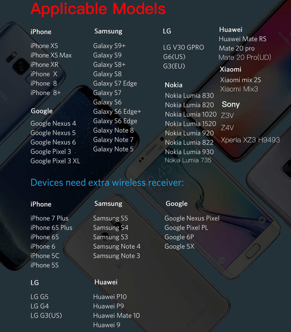 Kompatibilität: Geeignet für alle Qi-fähigen Telefone (4,0-6,5 Zoll). Kompatibel mit iPhone Xs Max / XR / Xs / X / 8/8 Plus, Samsung Galaxy S10 / S10 Plus / S10e / S9 / S9 Plus / S8 / S8plus / S7 / S7 Edge / S6 Edge Plus / Note 9 5 Series Geräten und anderen Qi-fähige Handys.