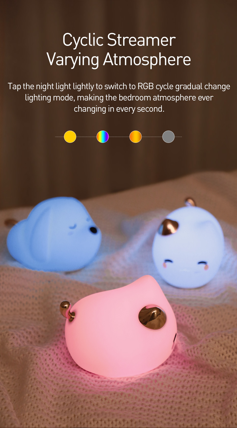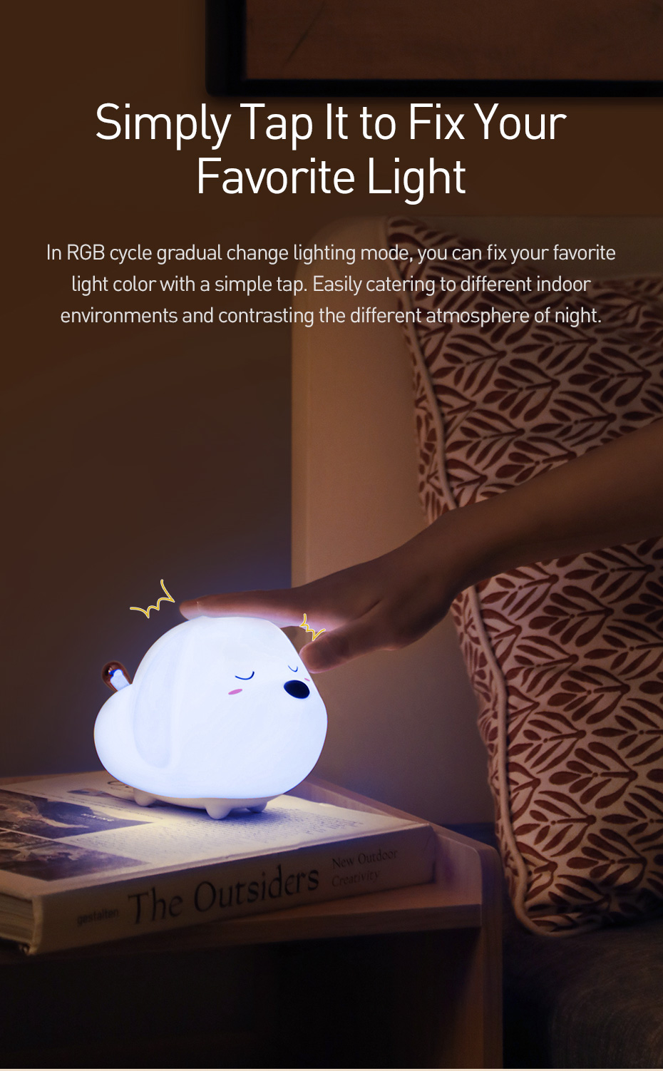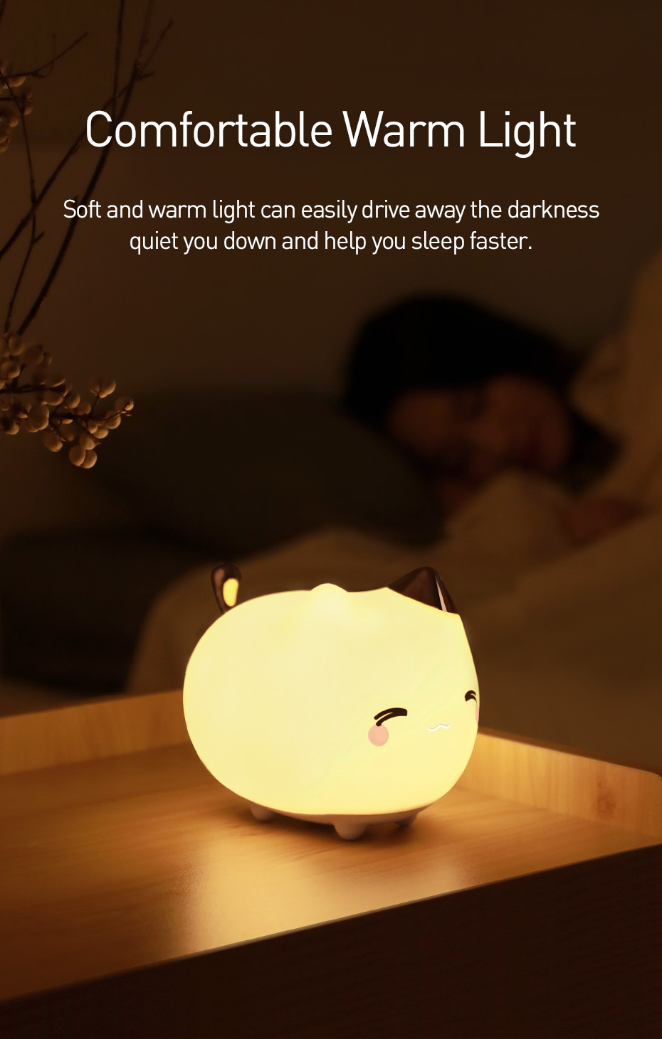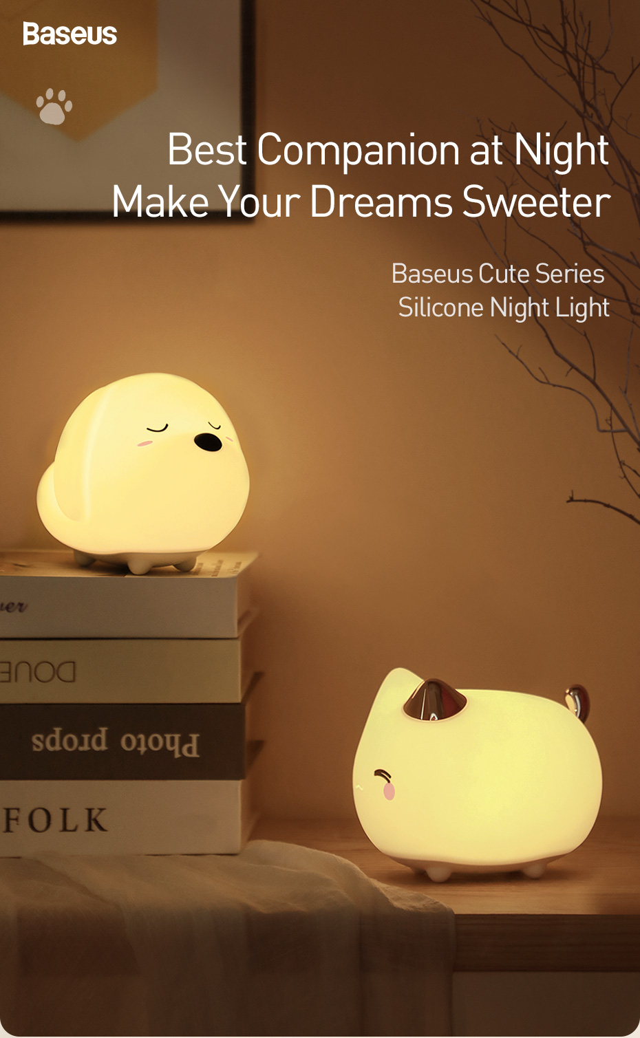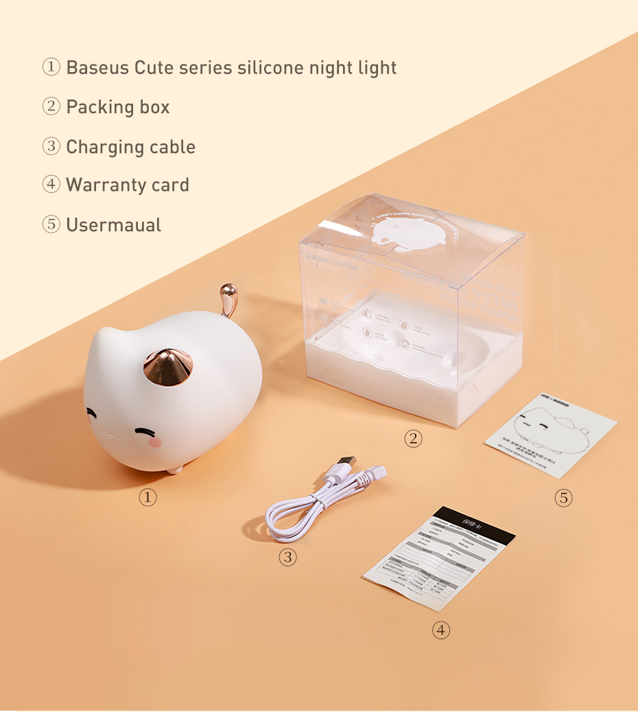Baseus Cute LED Nachtlicht Weiches Silikon Touch Sensor Nachtlicht Für Kinder Kinder Schlafzimmer Wiederaufladbare Tap Control Nachtlampe
