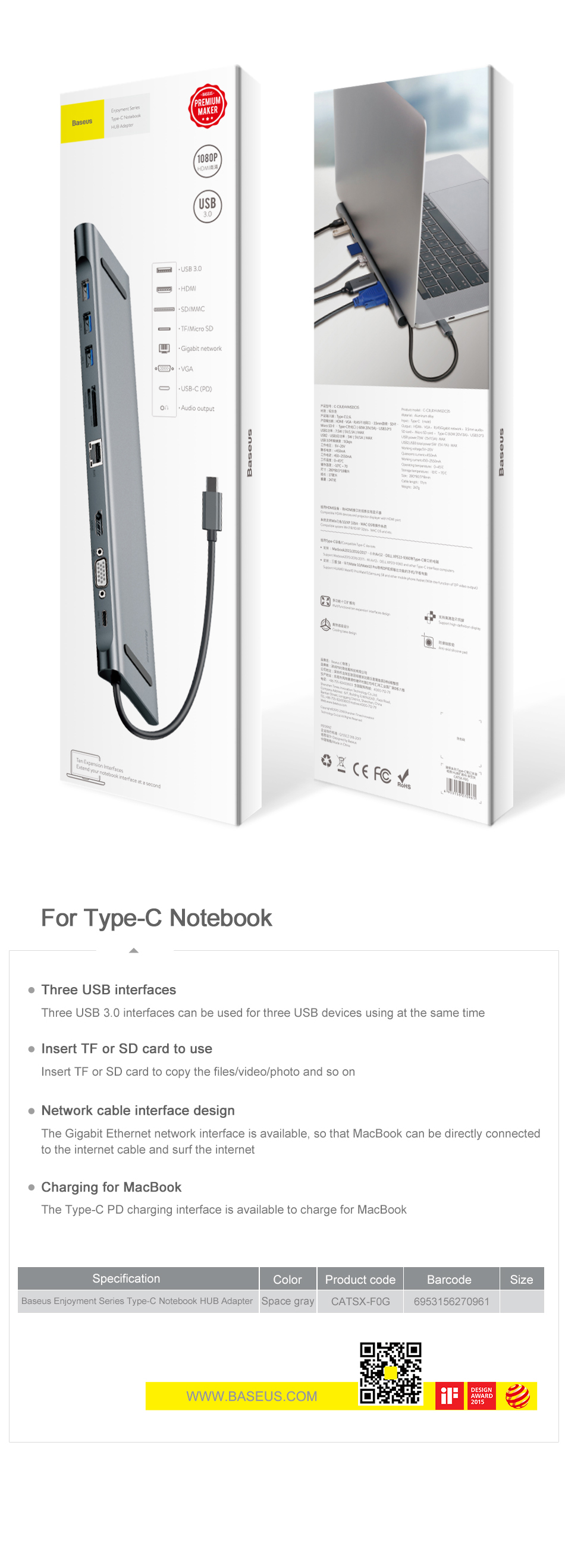 Baseus Enjoyment Series 10 in 1 Typ-C-Notebook-HUB-Adapter