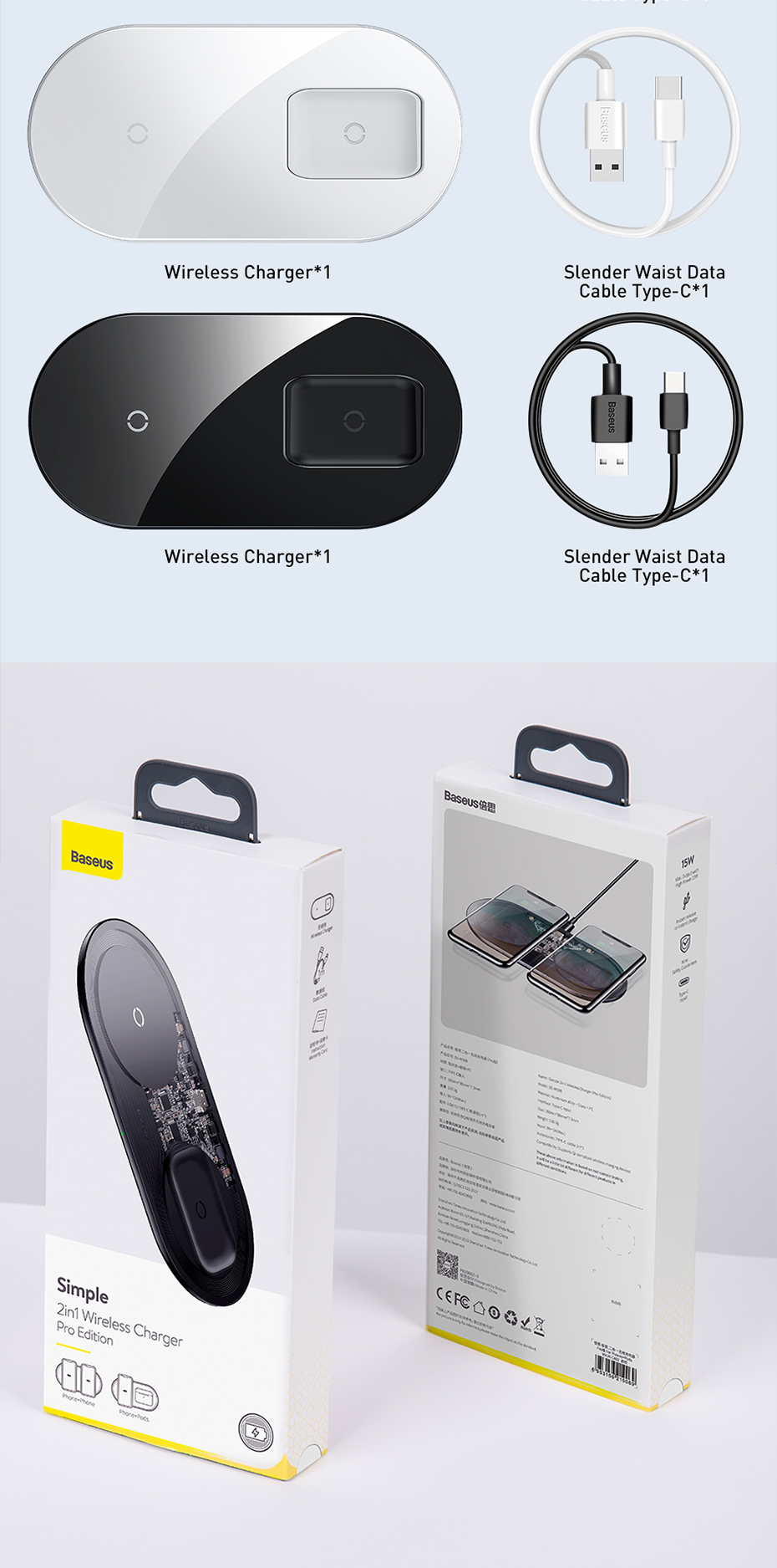 Baseus Qi Wireless-Ladegerät für Airpods Pro iPhone 11 Pro XS XR 15W Dual Wireless-Ladegerät für Samsung S10 S9 Handy-Ladegerät