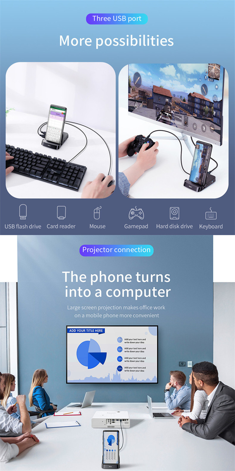 Feature  7 in 1 /  Plug & Play / High Speed / Portable / Phone Holder / Charging Dock