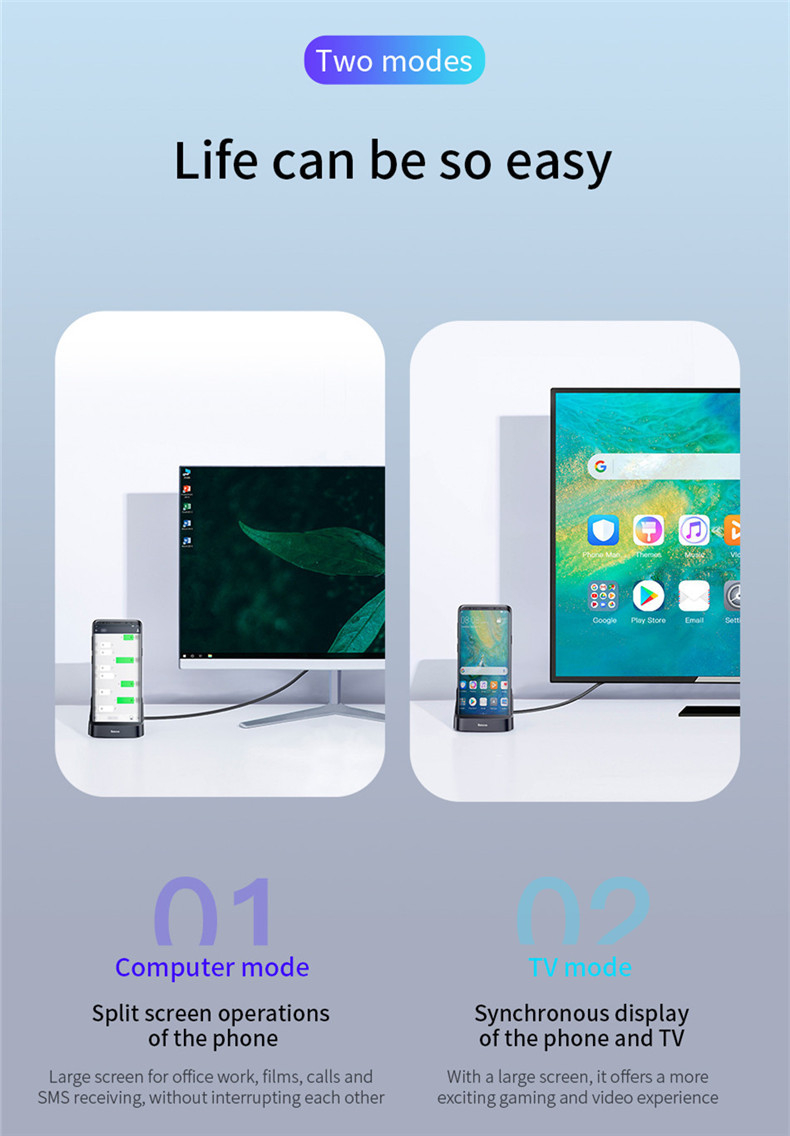 Baseus 7 in 1 Type-c Adapter HUB USB3.0 PD Charge 4K HD Display TF Card Reader Desktop Stand Docking Station