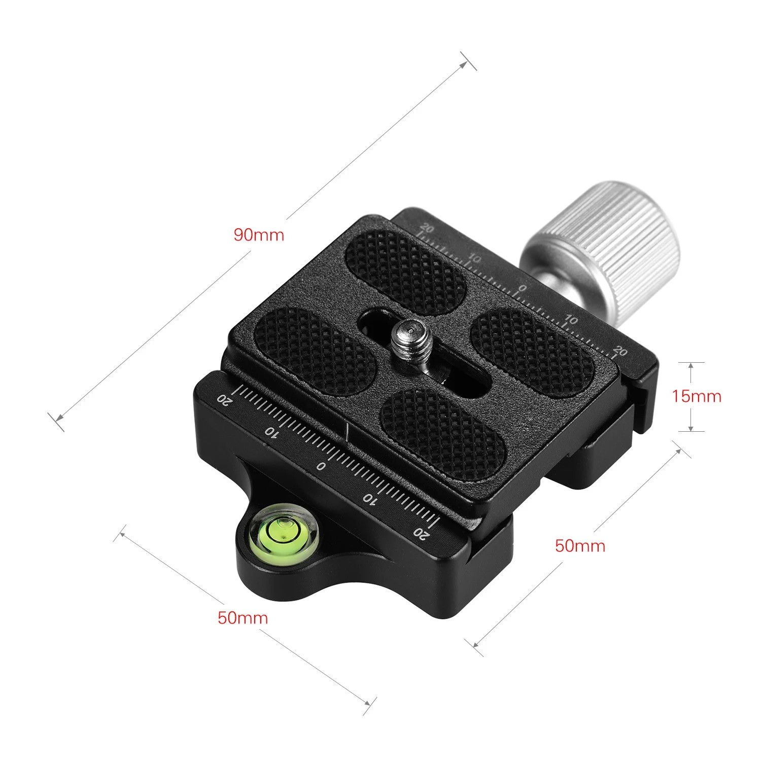 Ausgestattet mit einer 50 mm * 38 mm Schnellwechselplatte mit einer 1/4 "Standardschraube zur Montage von Kameras.
