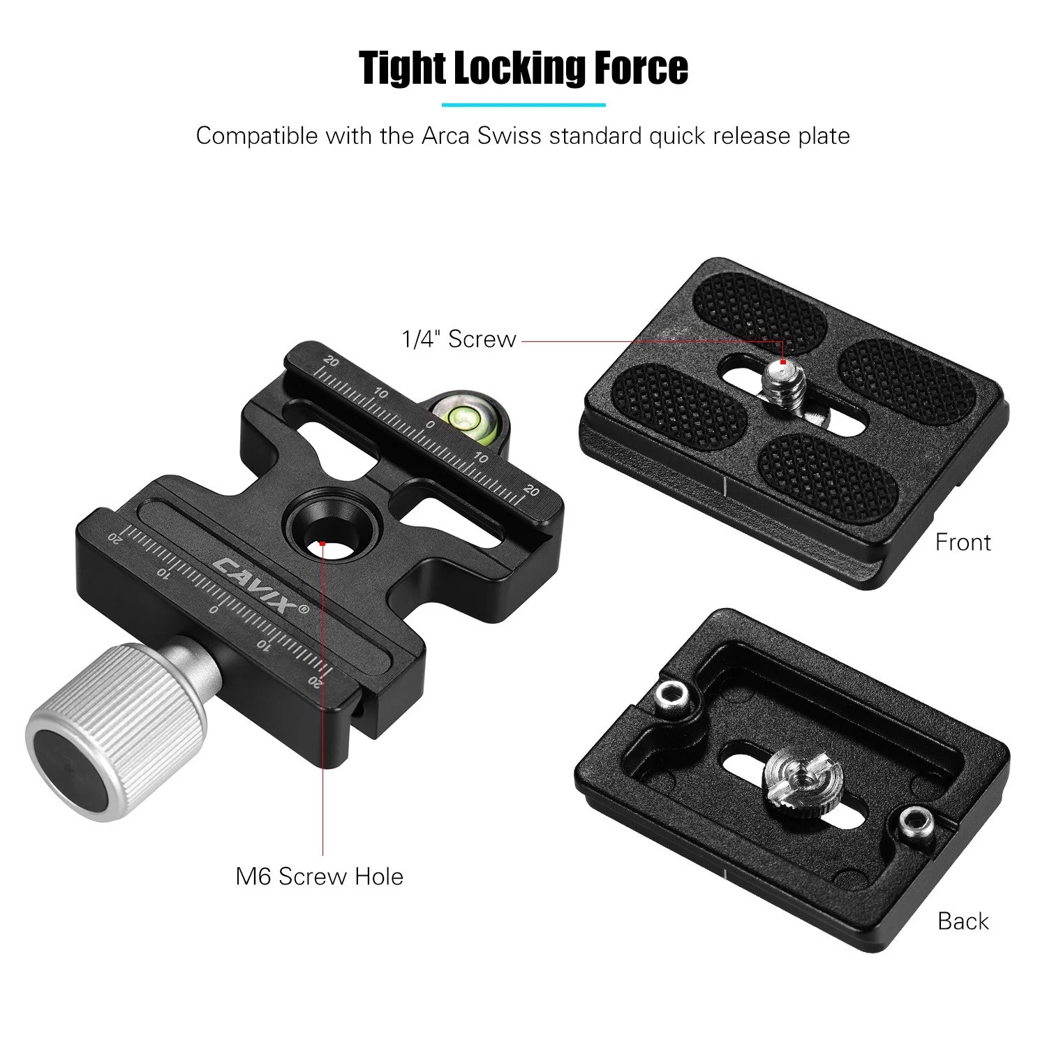 Gemäß Arca Swiss Standard, kompatibel mit den Arca Swiss Standard Schnellwechselplatten, enge Verriegelungskraft.